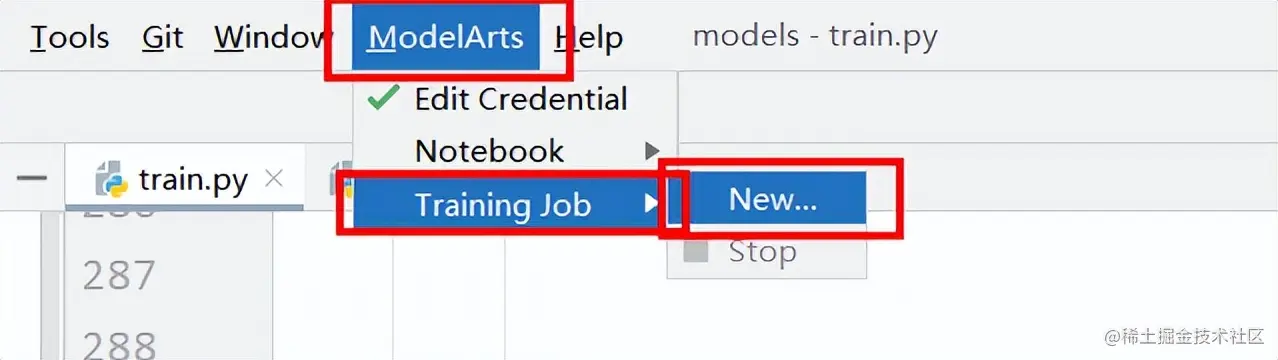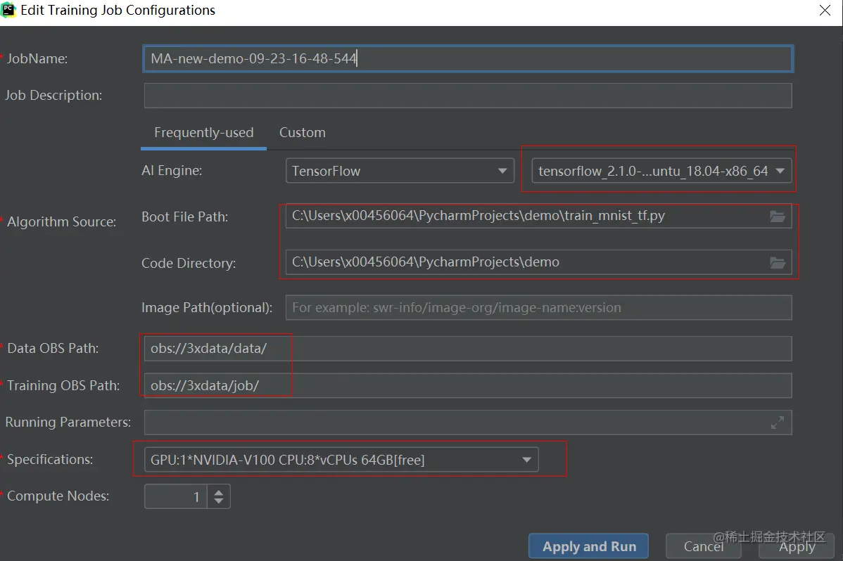 通过PyCharm把下载好的训练文件打开,点击插件的Training Job进行训练作业提交