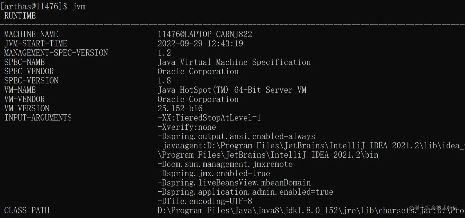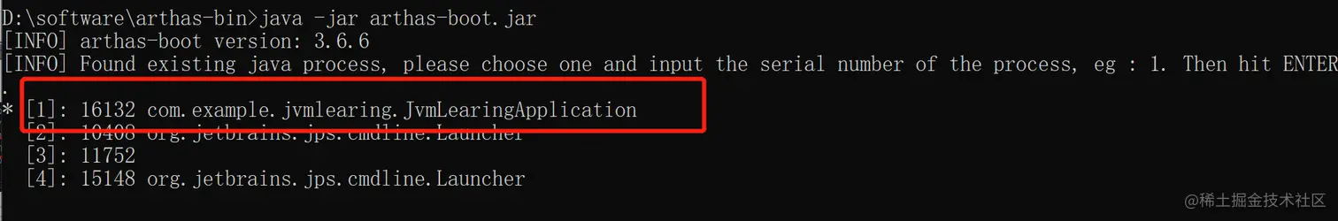 cmd进入解压后的文件夹,使用java -jar arthas-boot.jar命令,进入下面界面