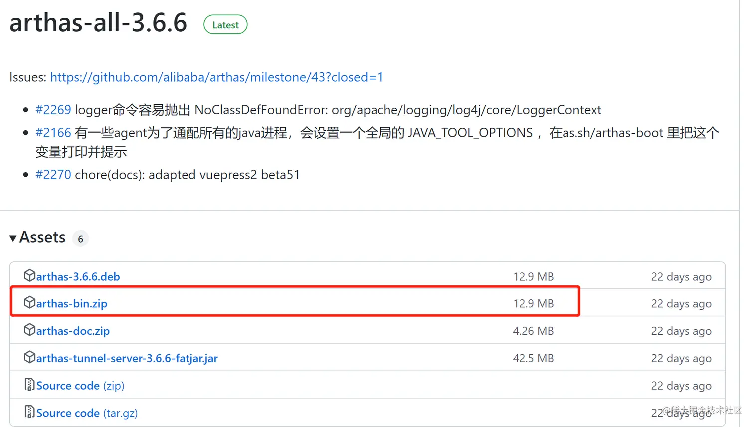arthas最新版本为arthas-all-3.6.6,下载地址:github.com/alibaba/art…