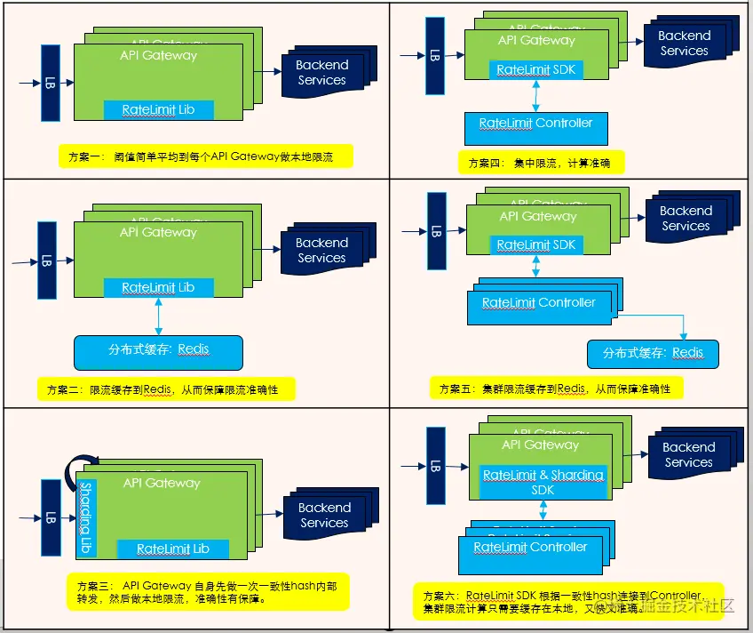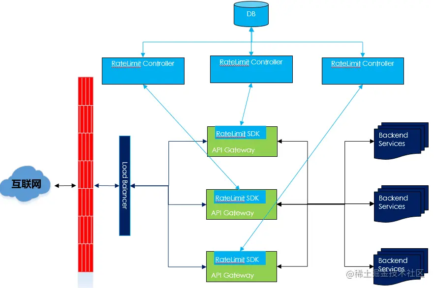 - RateLimit SDK访问根据一致性hash访问sharding后的RateLimit Controller,对于高吞吐高精度的流控集中在Controller内存进行限流计算。