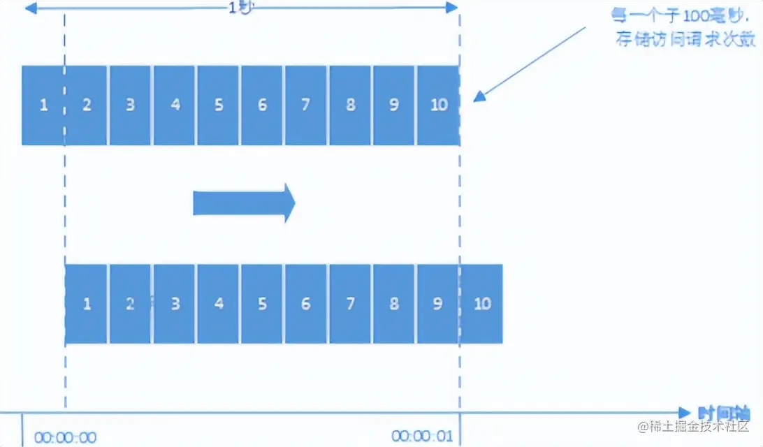 不足:1. 输出不平滑。2. 有临界问题,在流控周期边界处易发生输出激增,大幅超过流控阈值,冲坏后端服务。