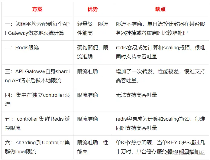 各种方案的优缺点如下表所示: