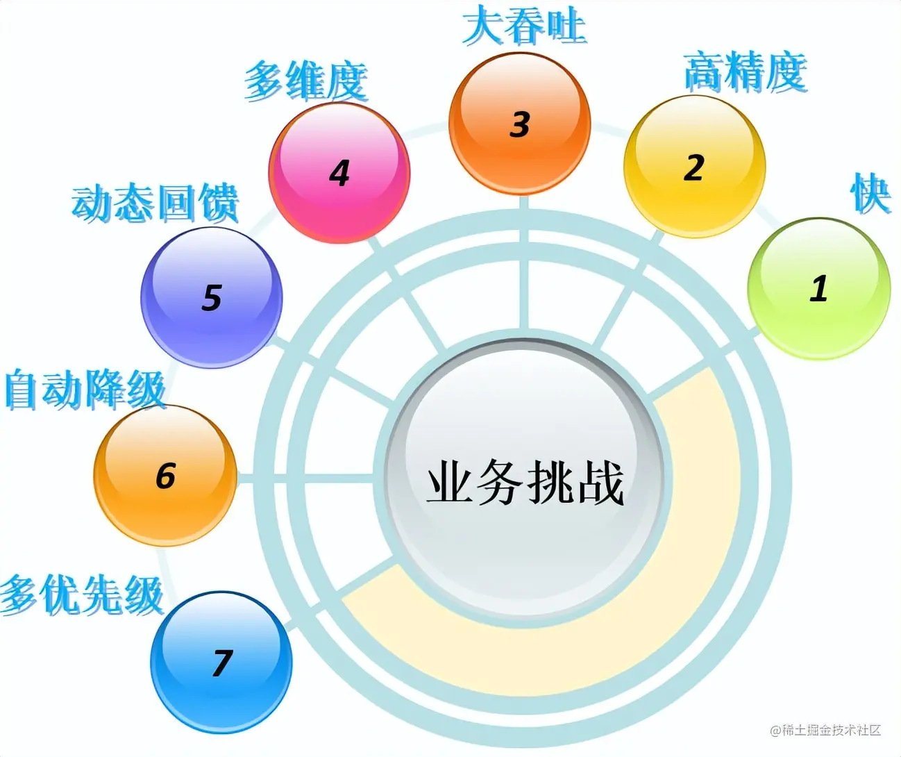 在大业务场景下,主要挑战是高并发、低时延、高精度、多维度灵活扩展等诉求。