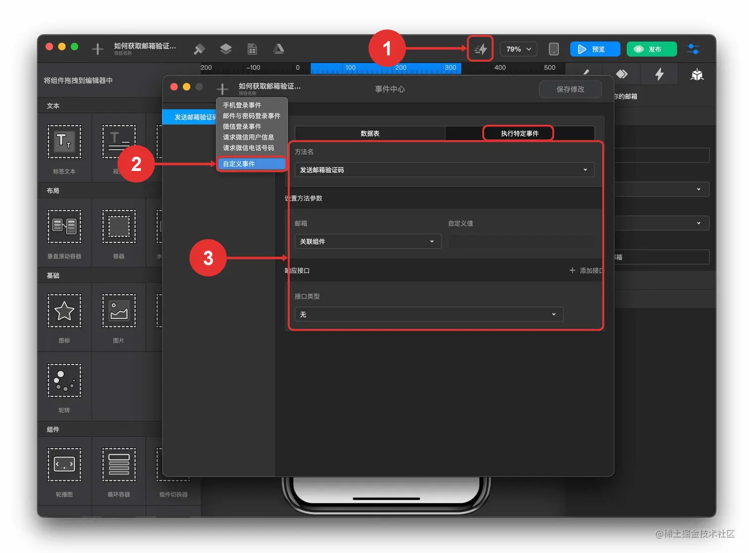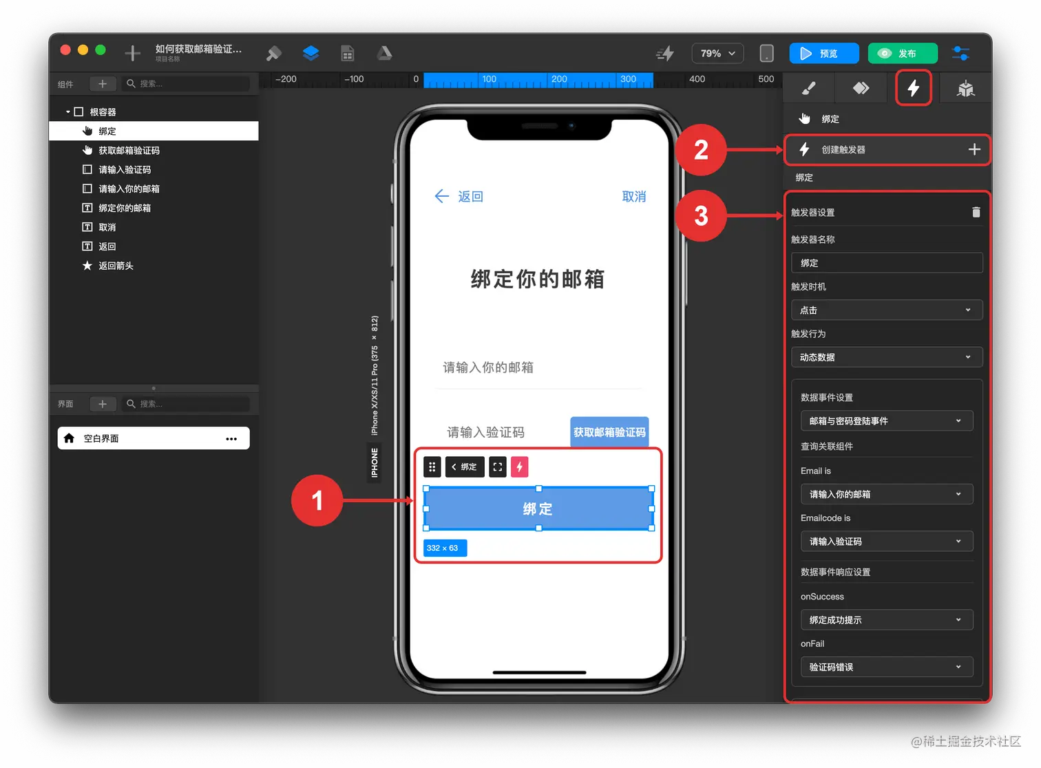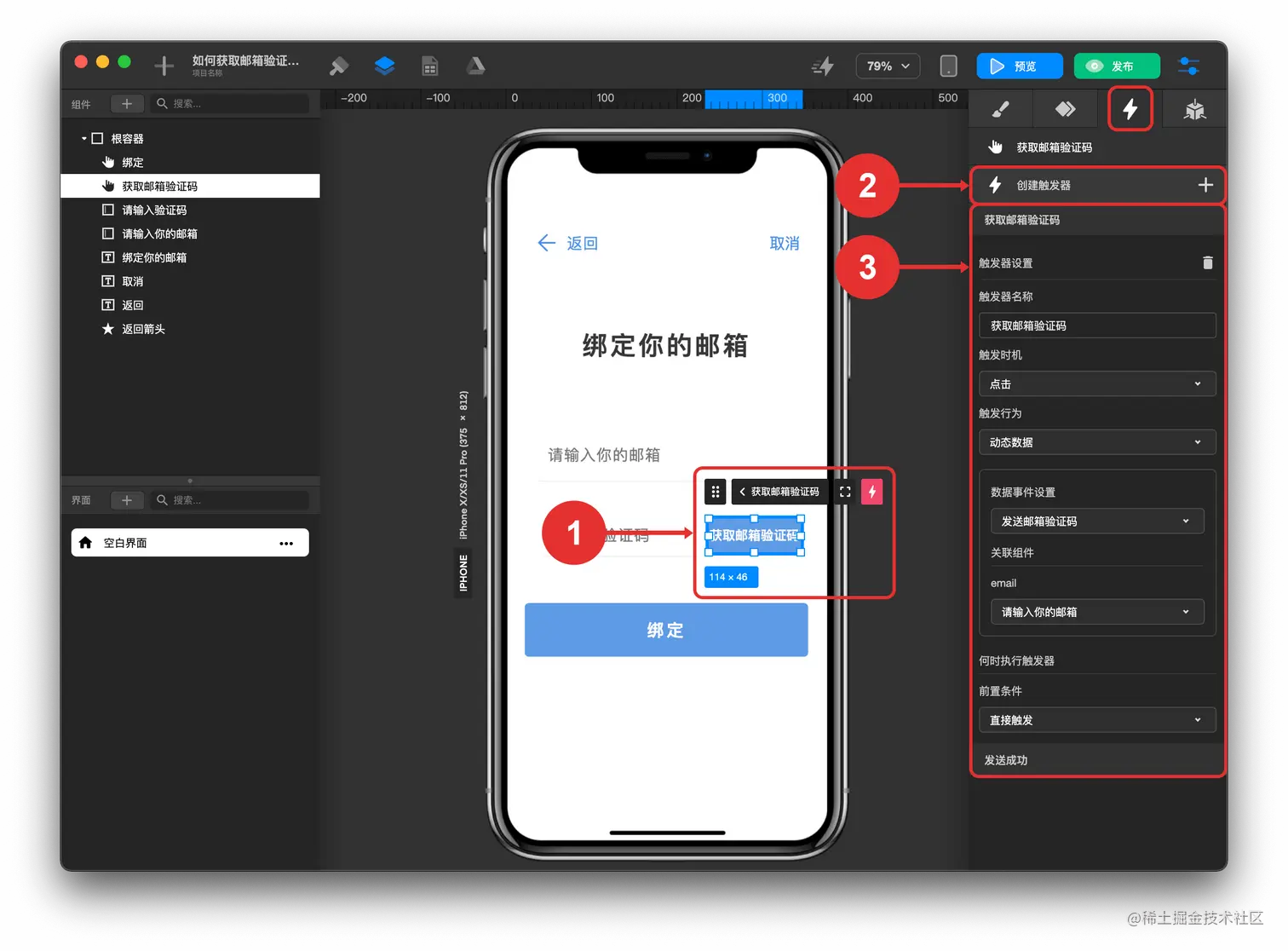 - 配置“获取邮箱验证码按钮” 触发器