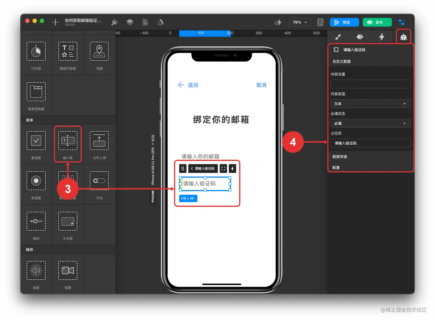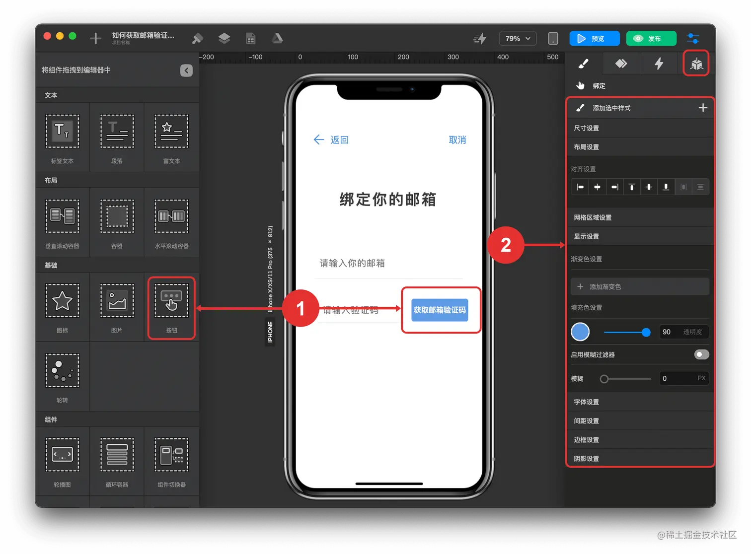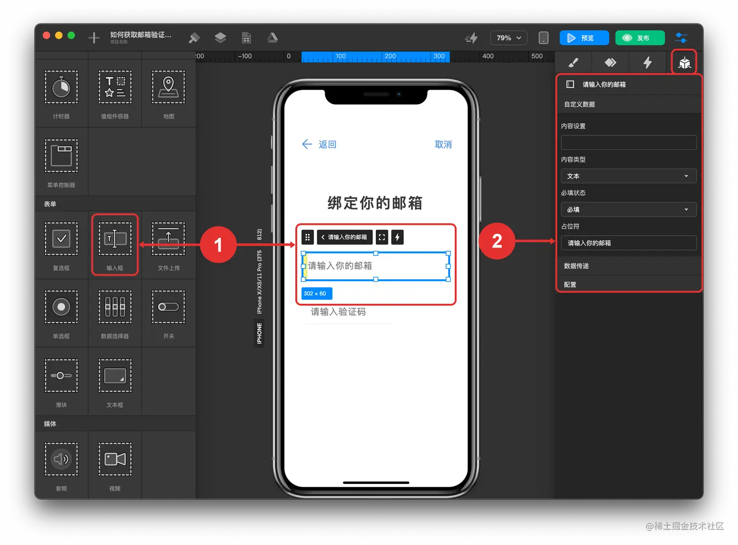 - 添加“请输入你的邮箱“ 输入框组件