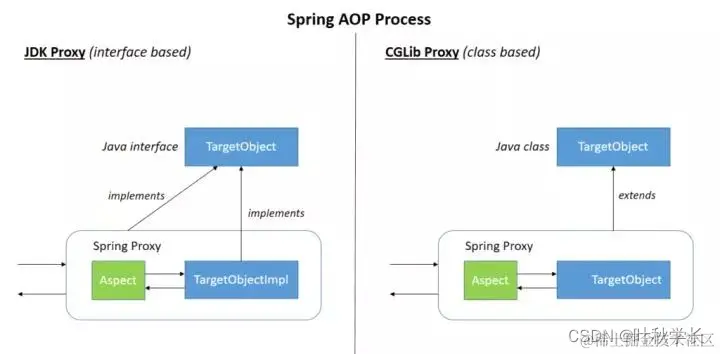 Spring AOP是基于动态代理的,如果要代理的对象实现了某个接口,那么Spring AOP就会使用JDK