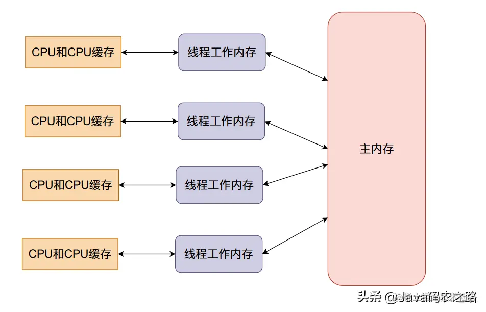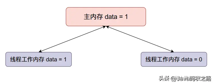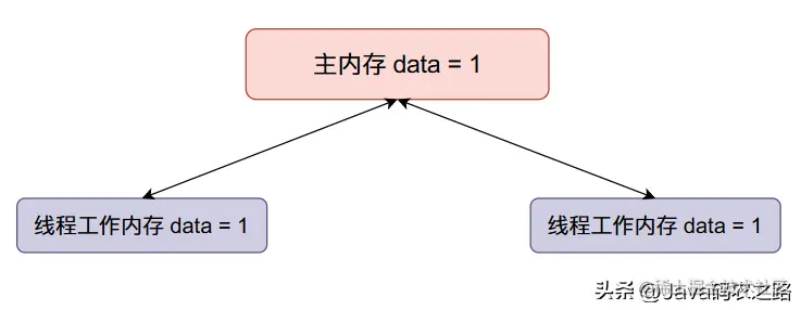 data全局变量保存在主内存当中,当现成开始执行的时候会从主内存拷贝一份到线程的工作内存当中,也就是线程的本地内存,在本地进行计算之后就会将本地内存当中的数据同步到主内存