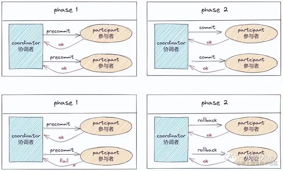 协调节点接收请求,然后向参与者节点提交 precommit ,当所有的参与者都回复ok之后,协调节点再给所有的参与者节点提交 commit ,所有的都返回ok之后,才表明这个数据确认提交