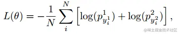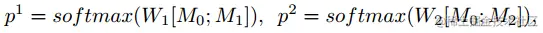 其中W1和W2为可训练变量和M0;M1;M2分别是三个模型编码器的输出,从下到上。span的得分是其起始位置和结束位置概率的乘积。最后,目标函数被定义为由真实的开始和结束索引的预测分布的对数概率的负和,在所有的训练例子中取平均值: