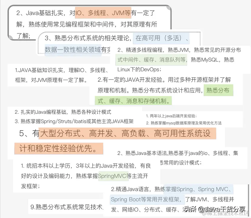 决定去阿里后,我把这段时间在各大厂的面试经验及高频考点都梳理了一遍。下面是我在阿里淘特的Java面试题和经验总结,还有在其他大厂的Java面经**+jcc4261获取**有想要进入大厂的小伙伴可以看看。