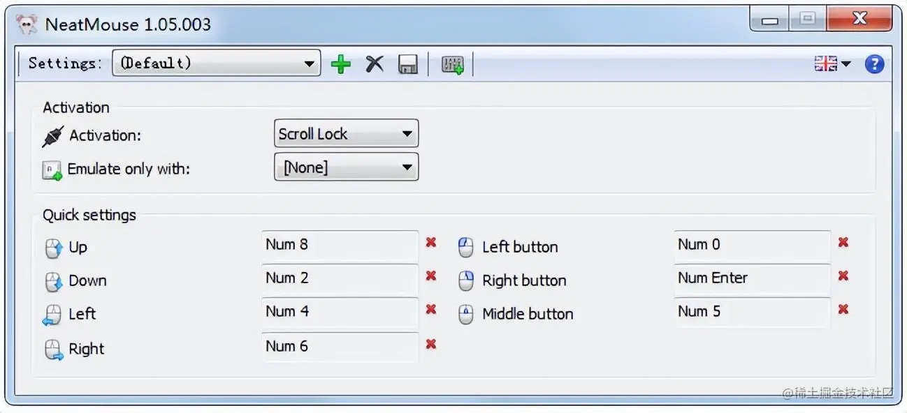 NeatMouse 是一个小型的工具能够使用鼠标光标控制指针。当真正的鼠标不能用的情况下,手上又没有其他的备用鼠标,这个时候NeatMouse的作用就体现出来了,它可以将数字键盘的所有键都完全调用起来,它有八个方向可以设置,而且还支持滚轮操作。而鼠标菜单的操作也可以设置,更不用说可以保存多个配置。