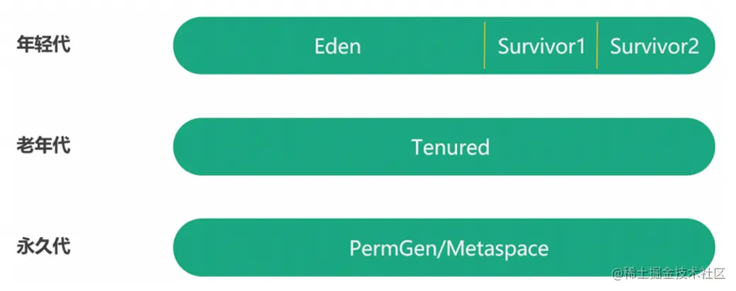 G1将堆划分为若干个区域,称作Region,一部分区域用作年轻代,一部分用作老年代,还有一种专门用来存储巨型对象的区域。