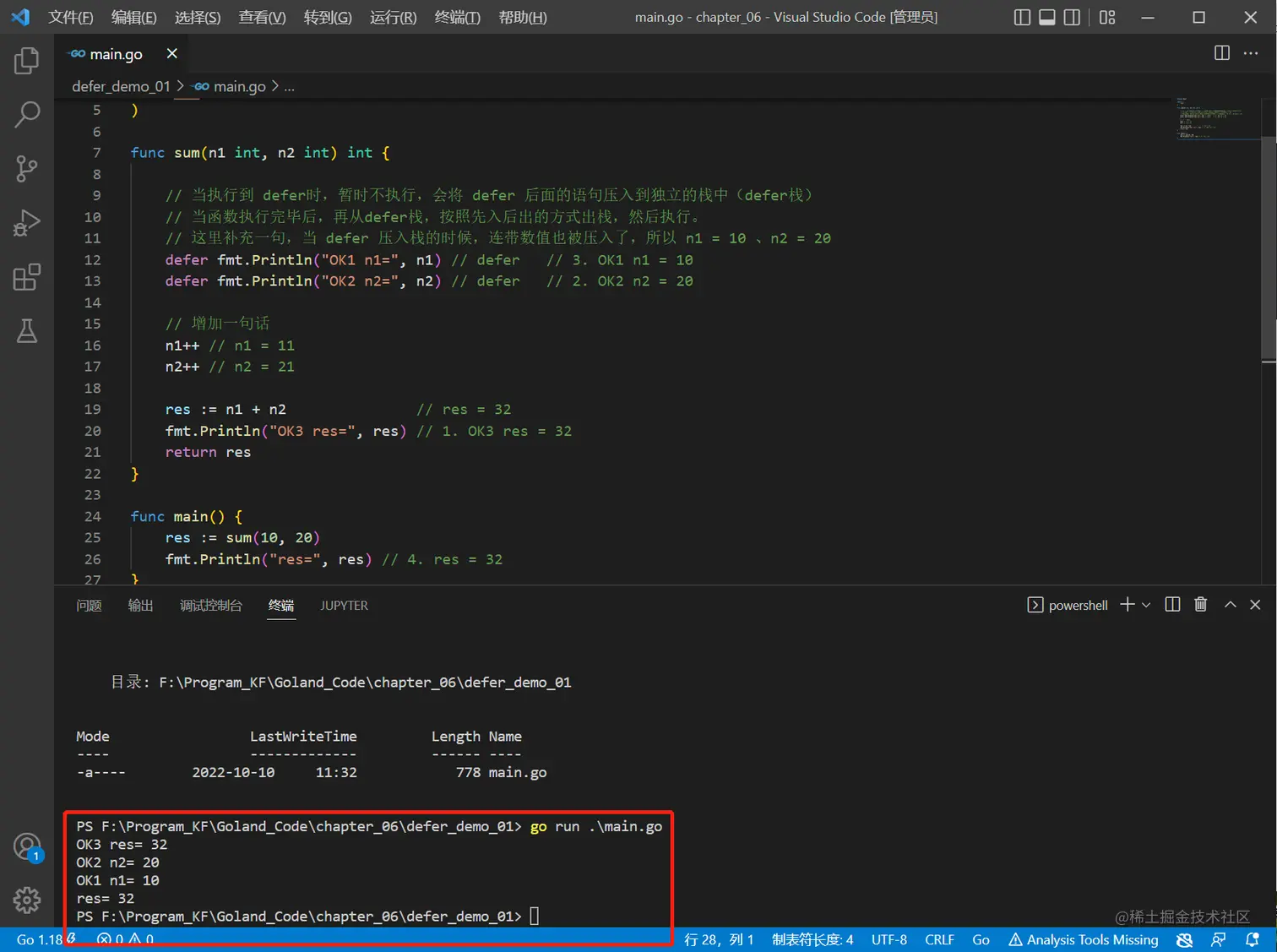 二、defer的细节说明: