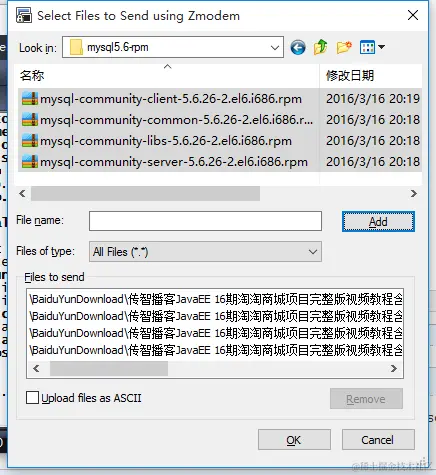 点击确定,继续选要上传的文件,选完后,你必须再次输入rz回车,它才会上传