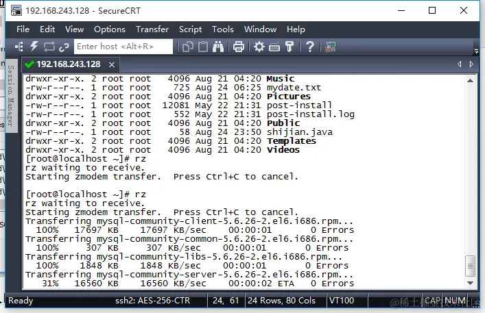 下载完成后,输入yum install lrzsz,安装这个东西,