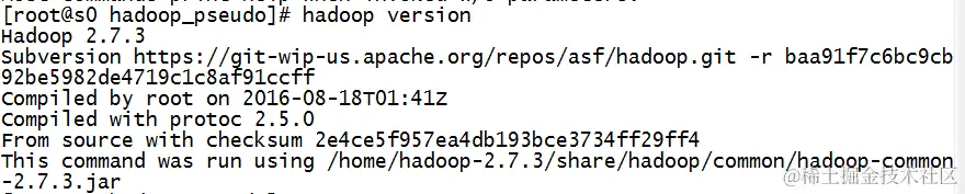 5、输入hadoop version显示版本信息