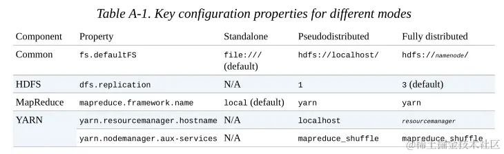 1、单机、伪分布式、完全分布式一些属性的配置表