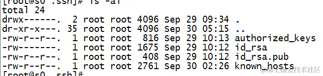 4、输入命令ssh-keygen -t rsa -P '' -f ~/.ssh/id_rsa,它会在你的/home/xxx(当前登陆的用户文件夹)创建一个隐藏的文件夹./ssh,使用命令ls -al查看,产生的文件目录如下: