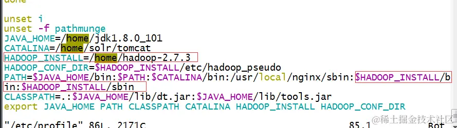 (2)第二种配置环境变量 HADOOP_CONF_DIR,vim /etc/profile,增加HADOOP_CONF_DIR= /home/hadoop-2.7.3/etc/hadoop_conf******