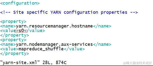 4、我们以s0主机作为namenode,所以我们修改s0的配置文件,修改core-site.xml、yarn-site.xml,hdfs-site.xml,给hadoop_conf下的slaves添加s1,s2,s3,表示添加三个数据节点