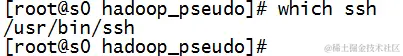 3、配置完成后,要配置ssh,查看是否安装了ssh,使用命令which ssh,若出现/usr/bin/ssh表示已安装。