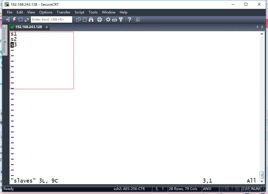 如果还要设置一个secondaryNode,比如将s2同时设置成secondaryNode,那么修改masters文件输入s2保存即可。