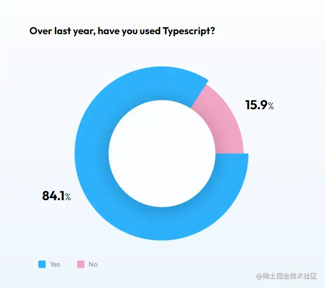 在《2022 前端开发者现状报告》中, 84% 的被调研者表示使用过 TypeScript。
