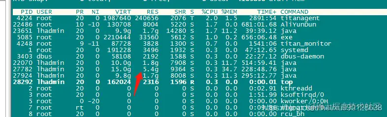1. top 一下发下,一个单一应用系统内存突然飙高(该系统 只每天 凌晨3点 和 19点的时候,会做一次跑批),其他时间段没有任何调度