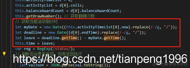 最近开发H5小游戏,有一个游戏活动倒计时,后端给我返回的活动结束时间为(2021-01-13 12:00:00)这种格式,我需要获取当前本地时间,用活动结束时间减去当前时间,那么我得先转为时间戳,我先将后端返回的时间通过 new Date("2021-01-13 12:00:00") 复原,在使用getTime()转为时间戳,再将我们当前时间转为时间戳,通过结束时间的时间戳减去当前时间的时间戳,获得相差的时间,在转为 时分秒(01:15:10)。