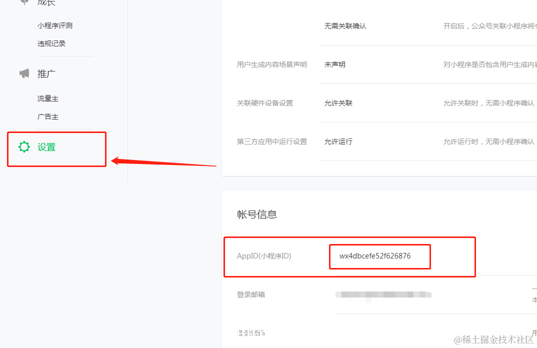 APPID 我们需要在小程序后台管理 设置 找到复制即可