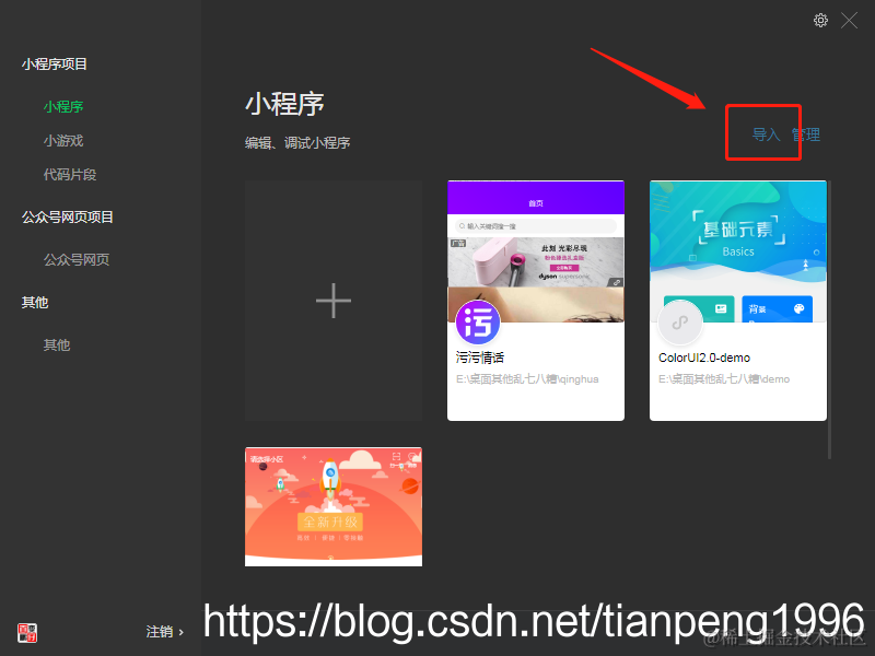 接着打开 微信开发者工具,将 qinghua 文件导入进去