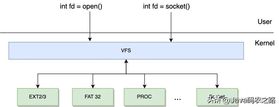 我们知道在 Linux 中无论是文件,socket,还是管道,设备等,一切皆文件,Linux 抽象出了一个 VFS(virtual file system) 层,屏蔽了所有的具体的文件,VFS 提供了统一的接口给上层调用,这样应用层只与 VFS 打交道,极大地方便了用户的开发,仔细对比你会发现,这和 Java 中的面向接口编程很类似