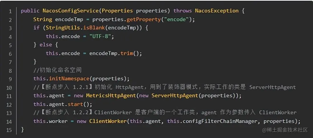 - NacosConfigService.NacosConfigService():NacosConfigService 的构造方法;