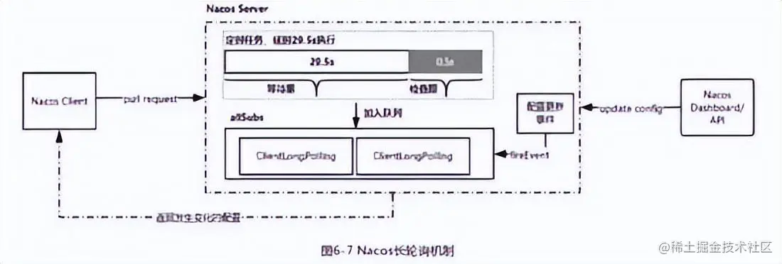 Nacos 动态监听的长轮询机制原理图,本篇将围绕这张图剖析长轮询定时机制的原理: