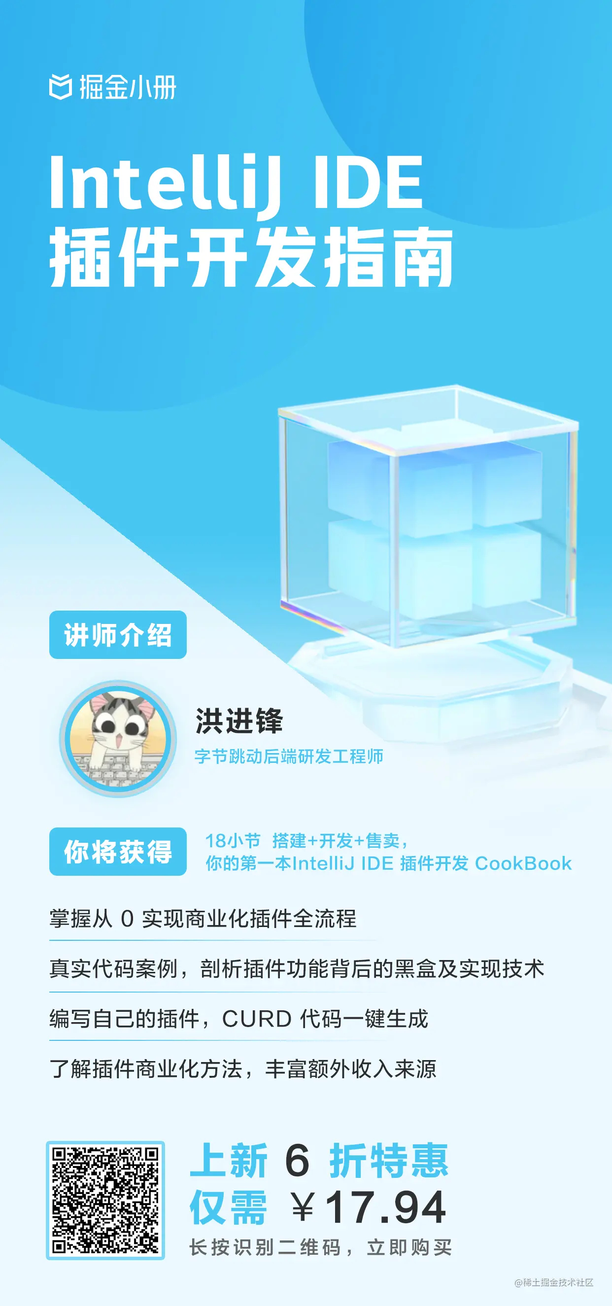 基于此,我才想编写这本小册,IntelliJ IDE 插件开发指南。带大家系统了解这些插件功能背后的黑盒,以及如果我们想开发一个自己的插件,都需要哪些技术能力。