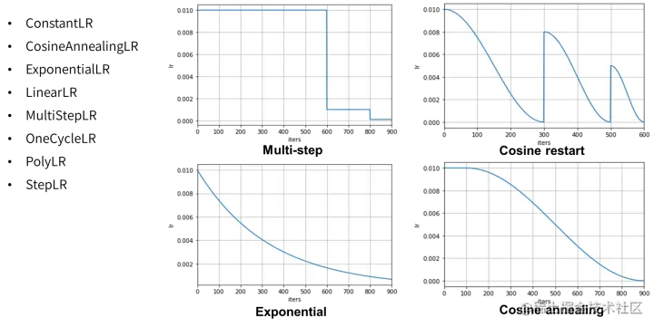 MMCV-1.x、PyTorch 里实现了的调度器,MMEngine 全都有(不仅支持学习率调整,也支持动量调整)