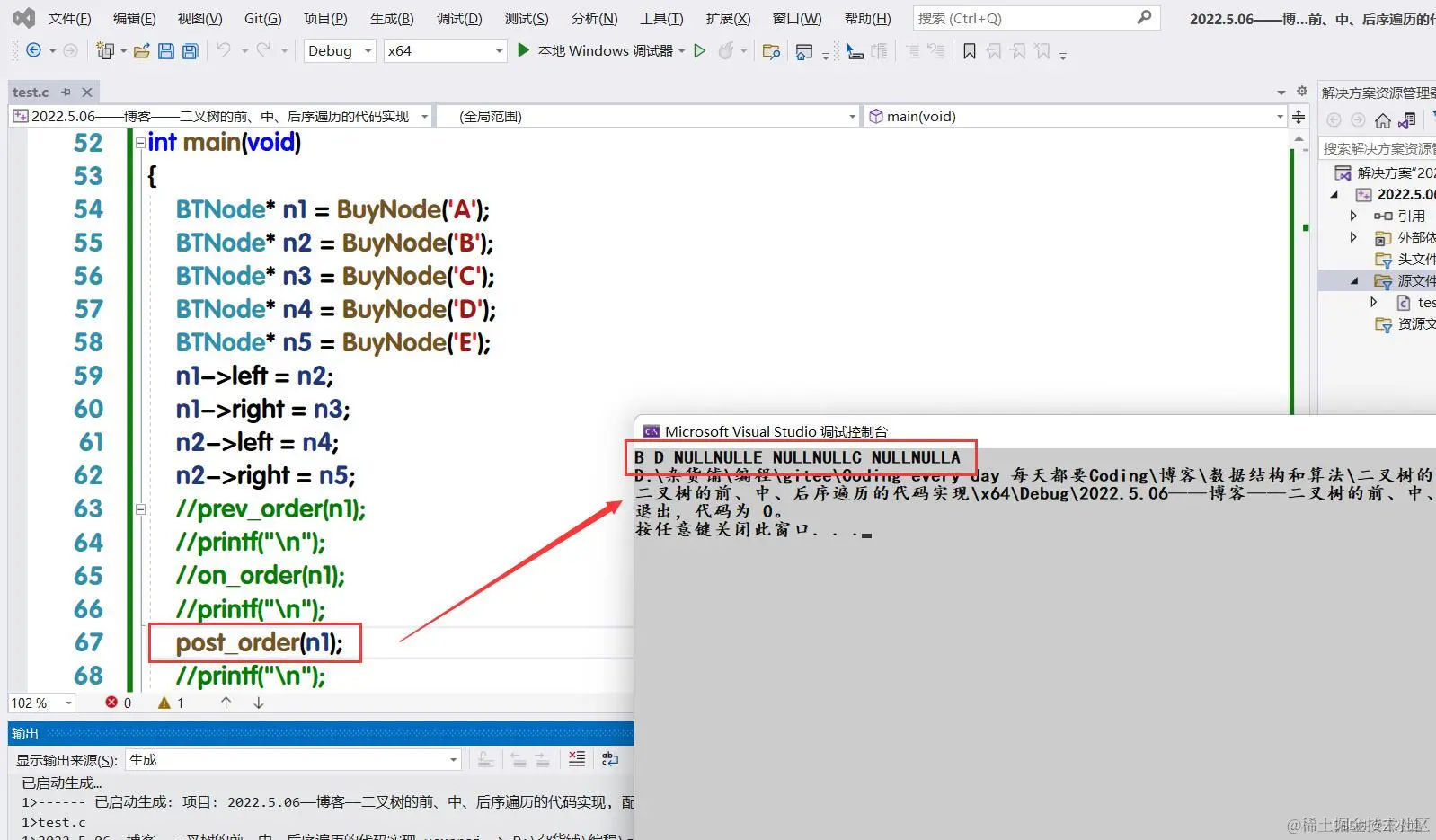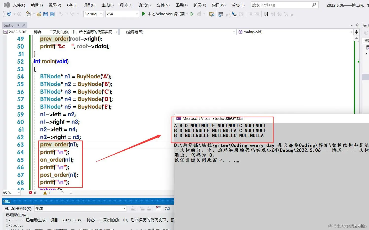 5.二叉树前、中、后序的代码实现: