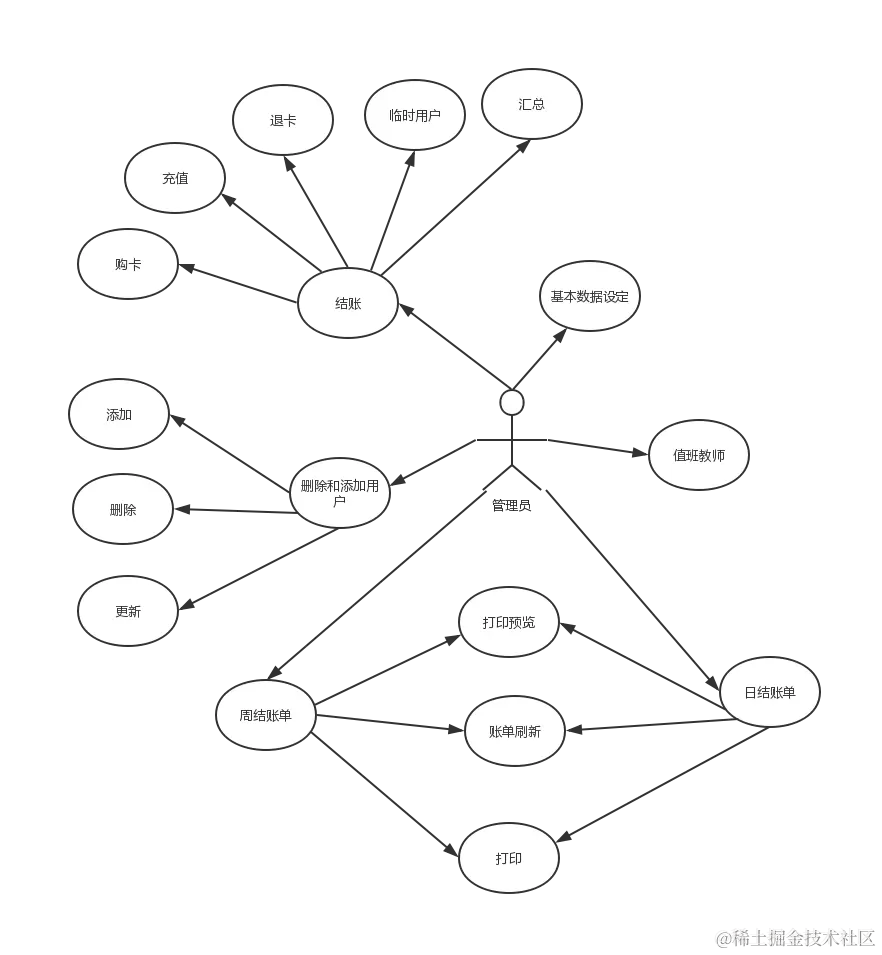 用例图是描述角色以及角色与用例之间的连接关系。说明的是谁要使用系统,以及他们使用该系统可以做些什么。一个用例图包含了多个模型元素,如系统、参与者和用例,并且显示了这些元素之间的各种关系,如泛化、关联和依赖。用例图是指由参与者、用例以及它们之间的关系构成的用于描述系统功能的视图。用例图是被称为参与者的外部用户所能观察到的系统功能的模型图,呈现了一些参与者和一些用例,以及它们之间的关系,主要用于对系统、子系统或类的功能行为进行建模。说白了,用例图就是描述用户能够通过系统进行什么样的操作,能够获得什么样的结果,即系统的外在表现。更加直观的理解就是,用户想在这个软件上实现什么样的功能。
