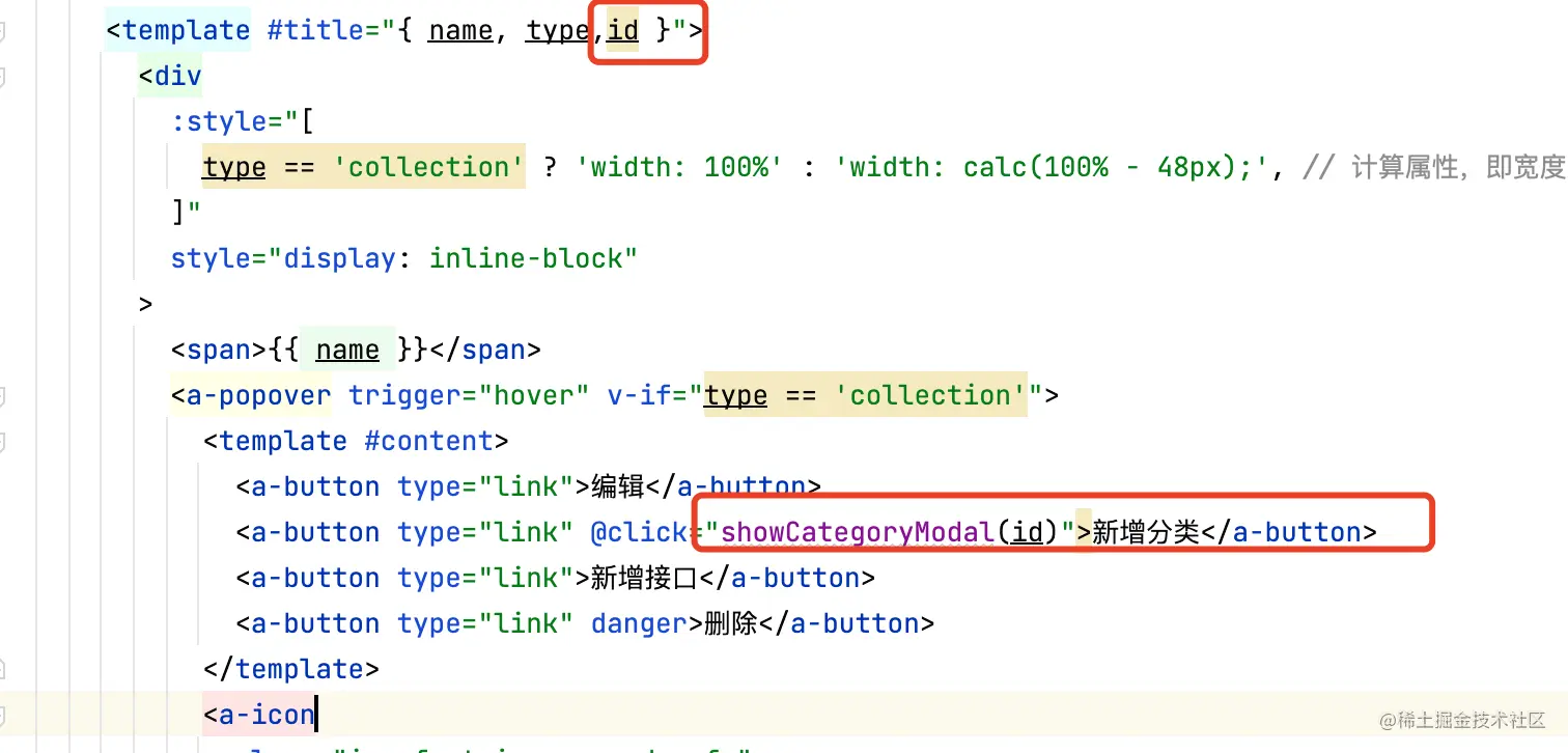 跟上面一样,给【新增分类】按钮添加事件,拉起Modal框,调用接口新增分类,不一样的是本次需要将父分类的ID作为参数传递。