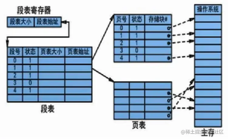 先分段在分页,段式存储和页式存储的结合。