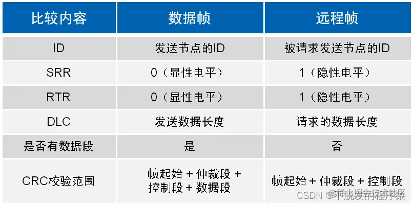 数据帧和遥控帧主要有两点区别: