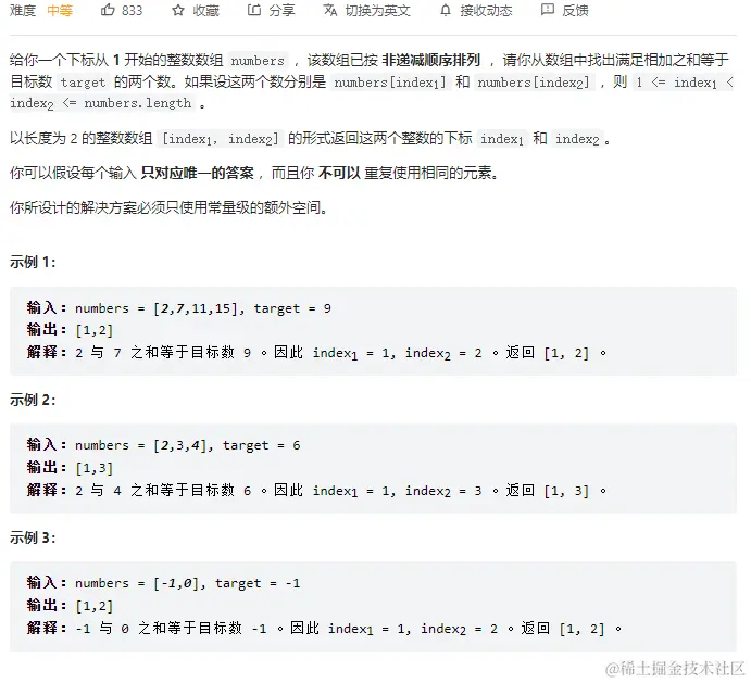 两数之和 II - 输入有序数组