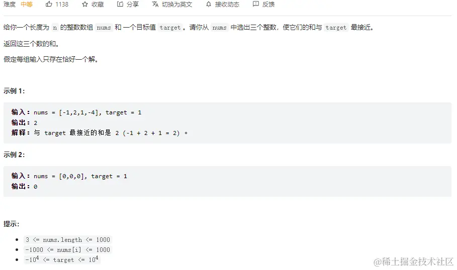 最接近的三数之和