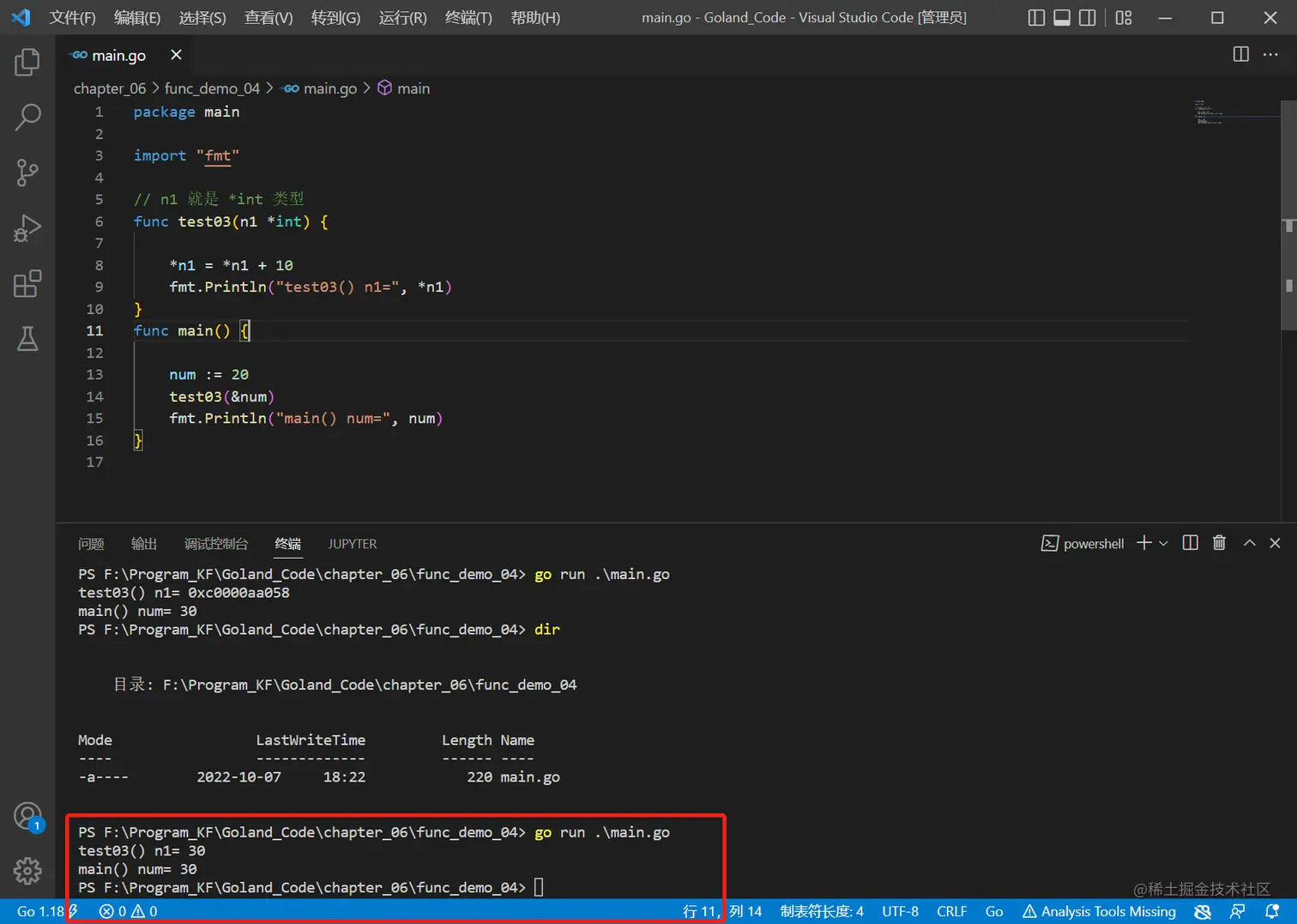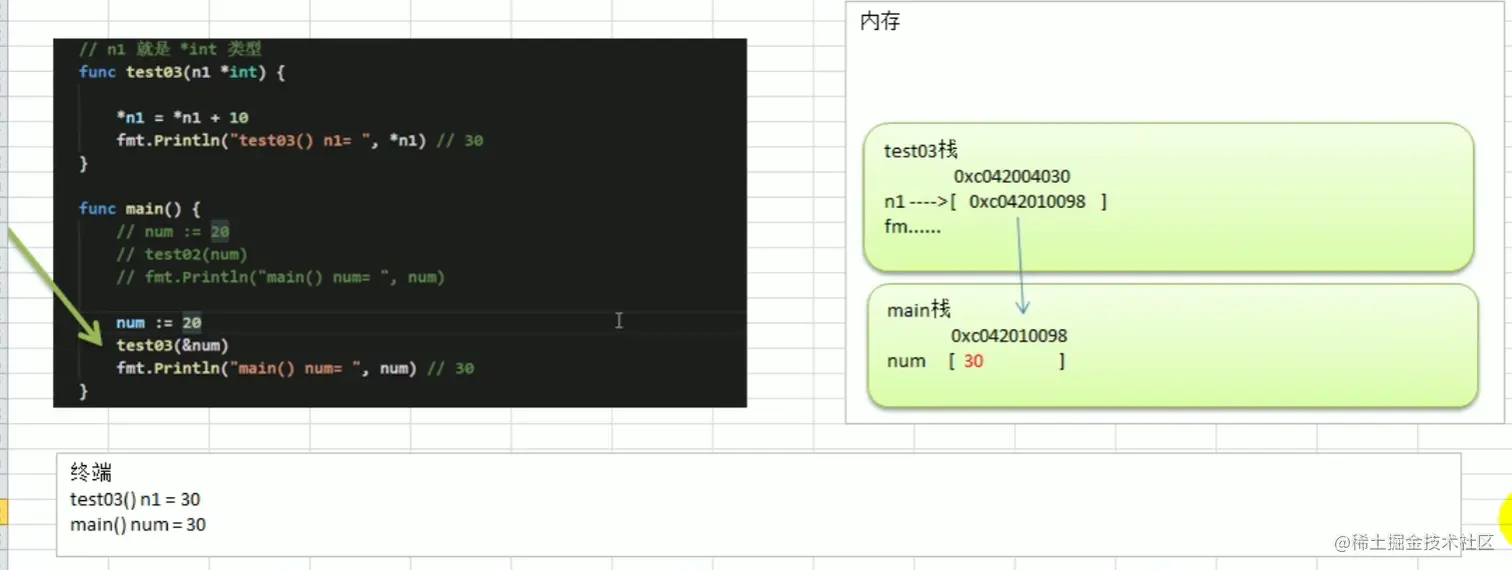 - 如果希望函数内的变量能修改函数外的变量(指的是默认以值传递的方式的数据类型),可以传入变量的地址 & ,函数内以指针的方式操作变量。从效果上看类似引用