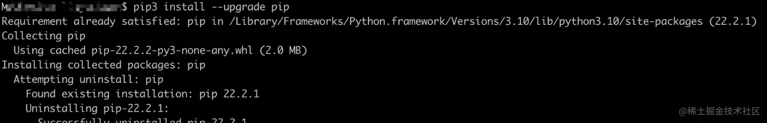 Requirement already satisfied: pip in /Library/Frameworks/Python.framework/Versions/3.10/lib/python3.10/site-packages (22.2.1)