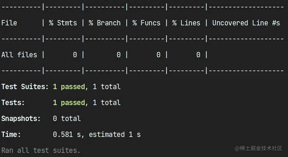 没有 Jest 配置文件情况下,Jest 执行测试会有很多问题,所以推荐使用下面命令来自动生成 Jest 配置文件: