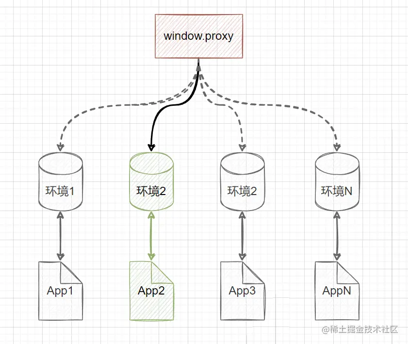 我们不妨跳出这个概念:我们为什么要恢复环境?假如有 N 个微应用,那么就分配 N 个沙箱环境,然后通过修改 window.proxy 就能指定对应的环境,这样一来根本不需要 “恢复环境” 的操作了。