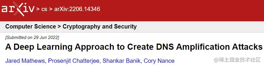 该研究以「A Deep Learning Approach to Create DNS Amplification Attacks」为题,于 2022 年 6 月 29 日发布在 arXiv 预印平台。