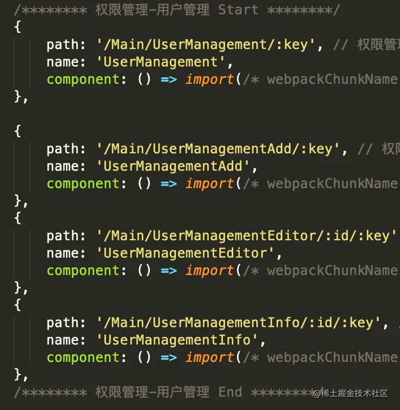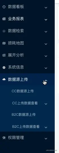 左侧菜单是后端返回给前台的,每个人的权限不一样,获得的菜单项也不一样,每一个功能模块(菜单项)都有一个唯一的key,模块下的所有接口都要带上key,后端根据key去判断是否有权限访问