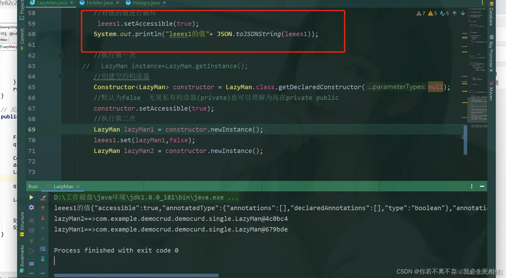 LazyMan lazyMan1 = constructor.newInstance();